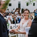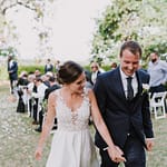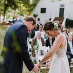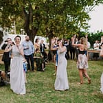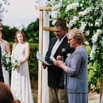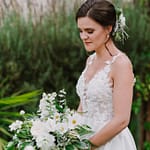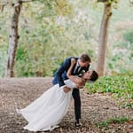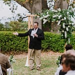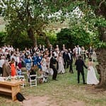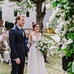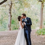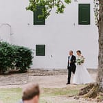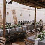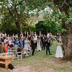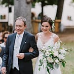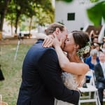 Emily was super chilled and easy to work with. She wanted a relaxed yet elegant vibe to her day. They got married outside under a huge tree on the property and had their reception inside the restaurants courtyard.