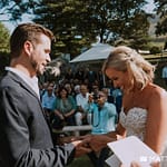 Their ceremony was sweet and personal, and Aimee’s niece and our friend Megan’s little girl Sienna, were the two cutest flower girls. They were surrounded by close family and friends, many who had made a large effort to be there. Stephen’s eyes welled up when he saw his beautiful wife walk down the aisle. We all cheered when they kissed and tossed rose petals as they walked towards their new life together.