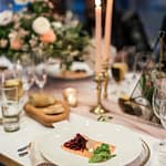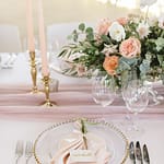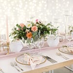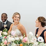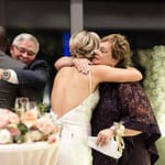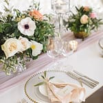 I loved the decor from this wedding. It was just right for this venue. Soft tulle ran over each table, there were touches of gold here and there, the flowers were incredibly pretty and the lighting made everything so romantic.