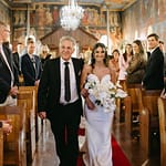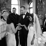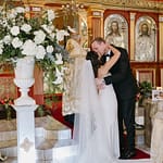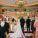 On an unusually warm May afternoon, Alexa and Brad celebrated their wedding in true Mediterranean style. The day began at the beautiful Greek Orthodox Church, tucked away but transporting everyone straight to the heart of Greece. With its insanely beautifully decorated paintings inside, the flickering candles, and lovely florals, it set the perfect tone for a ceremony that was both sacred and deeply personal.
