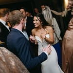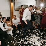 Dinner was hosted in the estate’s elegant restaurant, a space that felt both intimate and celebratory. The menu was a highlight, with their fresh, seasonal, and beautifully prepared food, it was delicious. Every course was met with compliments, but it was the tiramisu that truly stole the show. The couple finished off the large ‘wedding cake’ with a bit of cocoa dusting and then guests could help themselves.