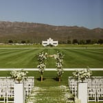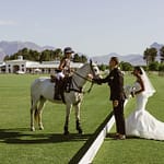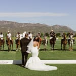 The ceremony was out on the Polo lawns, and after the ceremony the couple surprised their guests with a polo match.