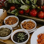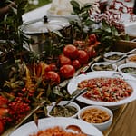 The ceremony was held on the lawns and the circular and colourful arch really stood out against the garden. After the ceremony, the couple led the guests towards the deck area where Annelize Catering were set up with the most delish food bars! The food, as usual, was an absolute hit! It was just divine and everyone loved it.