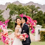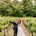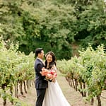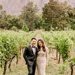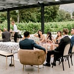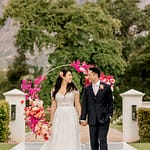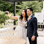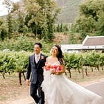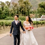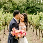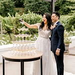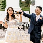 The ceremony arch stood out so nicely against the vineyards and mountains. The couple really made a statement standing in front of it. The cocktail hour had music, a champagne tower, live food stations and more – really just a fun filled afternoon.