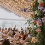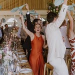 The wedding day followed, and although the weather threw a little curveball with some unexpected rain, we were ready! We set up a tent to keep everyone cosy for the cocktail hour, and when it came time to dance, the party moved inside and the energy soared. It was clear from the start that this was a vibey, up-for-anything crowd, and they brought the best energy to every moment of the day.