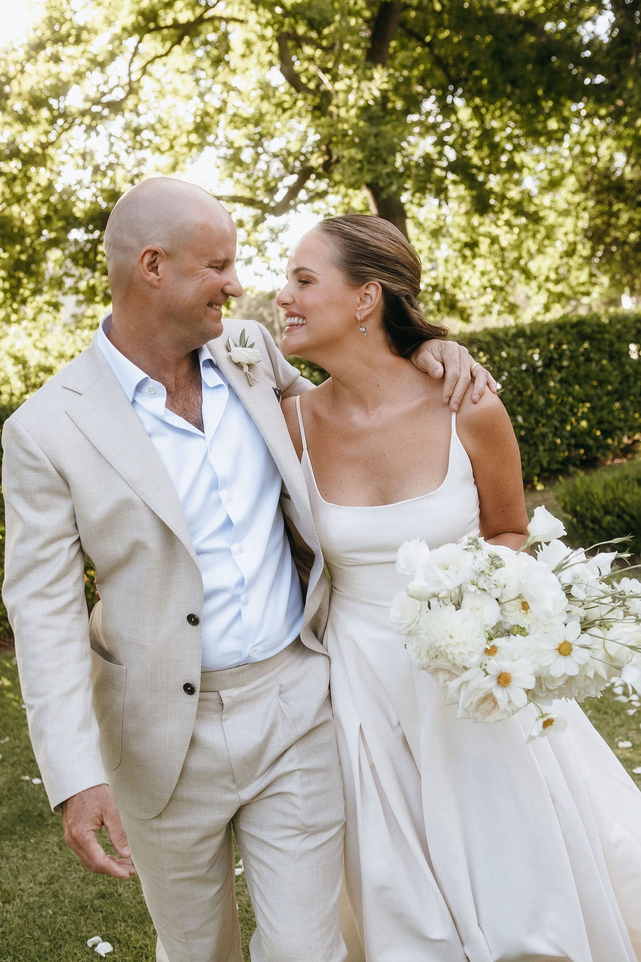 The following day was the wedding itself, an intimate ceremony with just 35 guests. Antonia and Andrew said their vows beneath shady trees on the property, surrounded by nature and the people they love most. The setting was peaceful, emotional and incredibly beautiful.