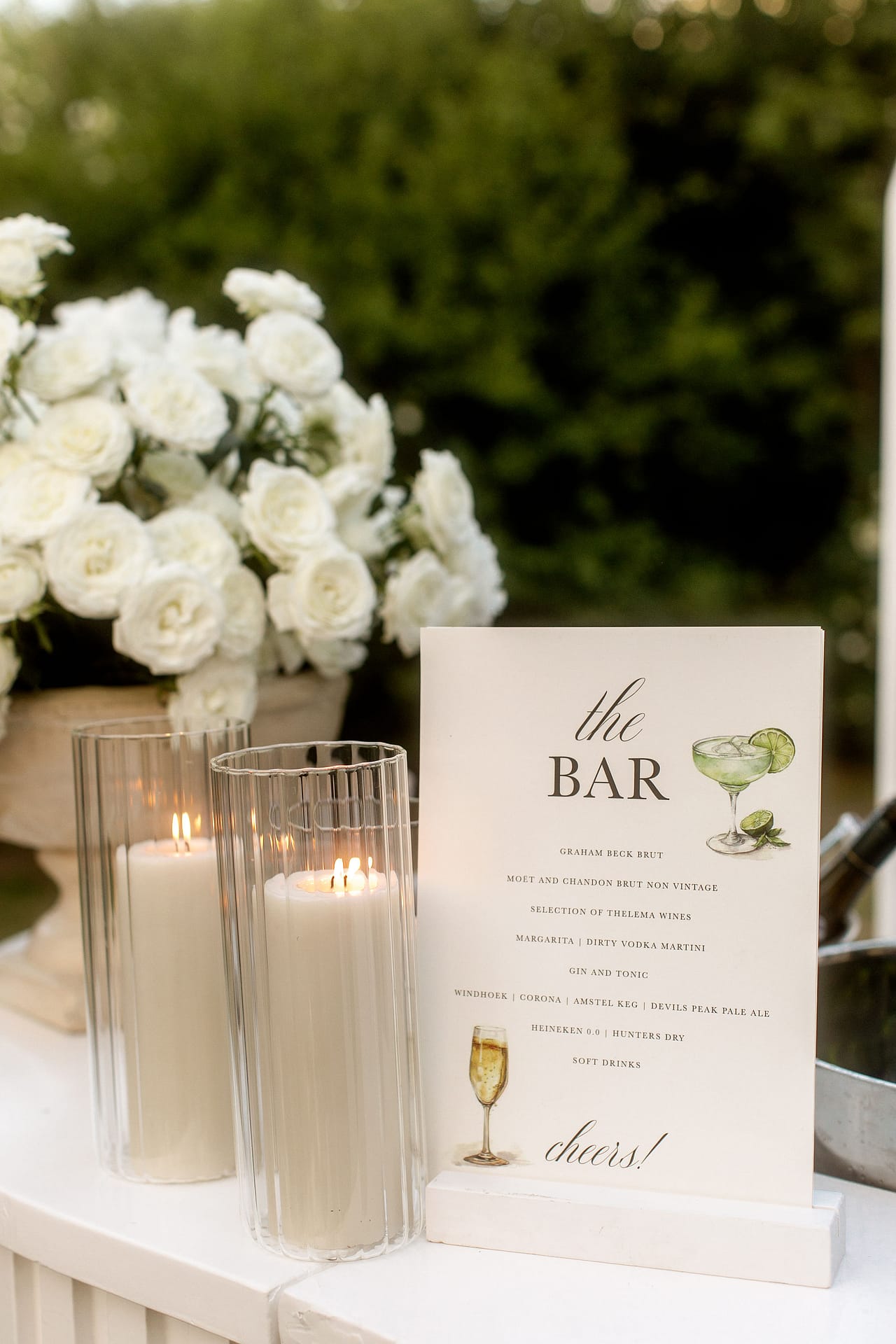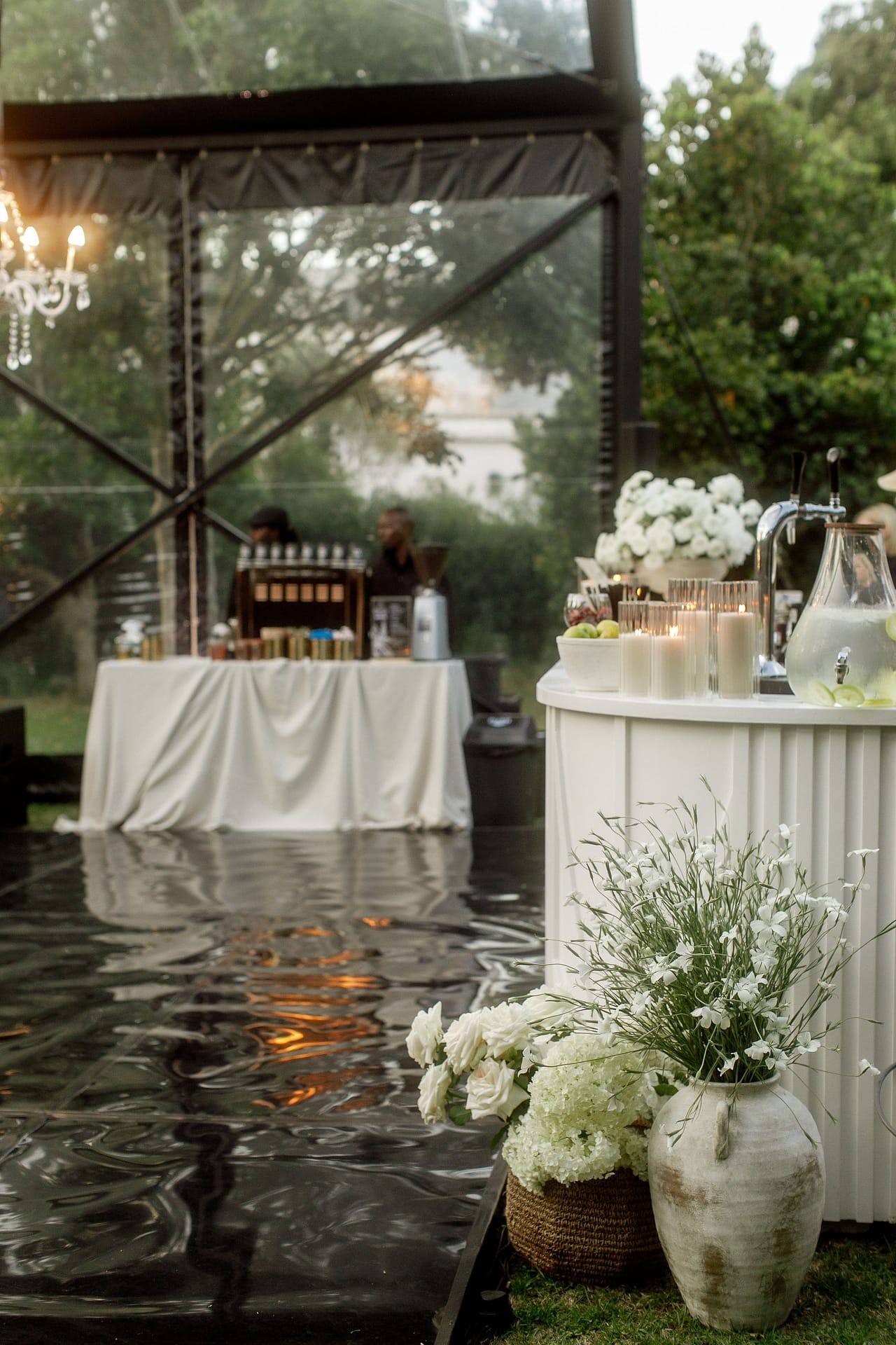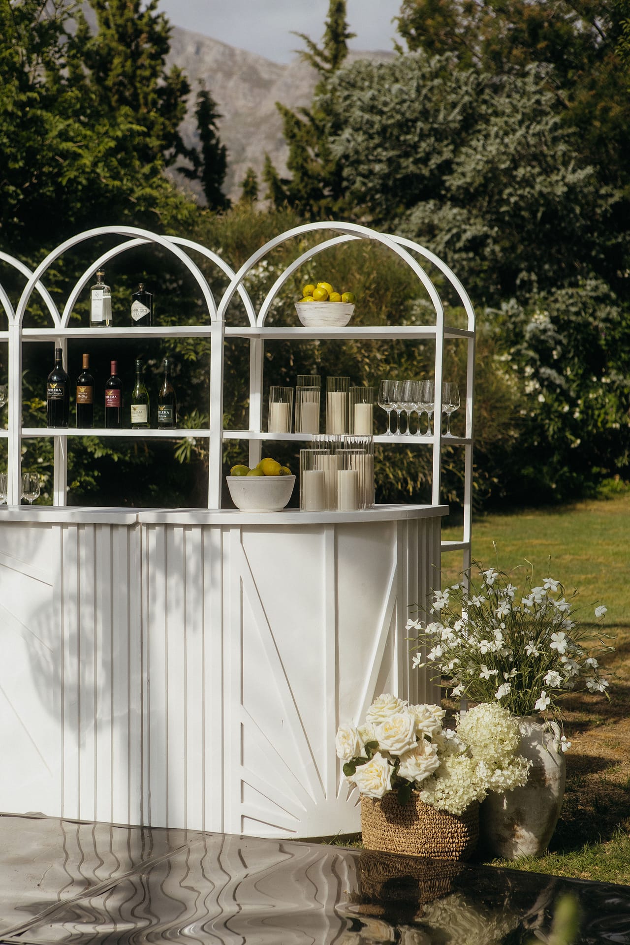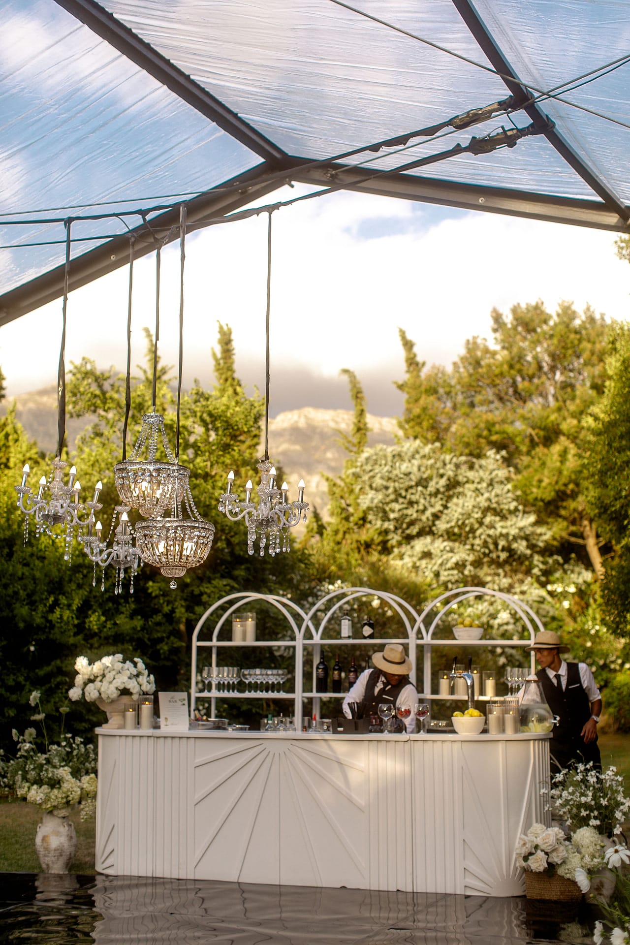 The celebrations began with a traditional South African braai on the evening before the wedding. Relaxed cocktail furniture was setup for a casual dining experience, the fire crackled, and guests gathered in a casual, joyful atmosphere. A marimba band played for a few hours creating a distinctly South African feel for the guests. It was the perfect way to welcome everyone.