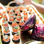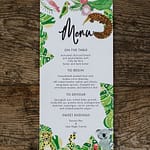 The reception was held on the deck and it really look magnificent. I loved how they enjoyed bright colours, it is always nice to do something a little different and the flowers and decor by Botanica really was something special. All the animals and art you see on the stationary was hand painted by Celia herself. She is very talented and I loved how the menus came out.