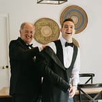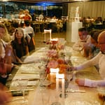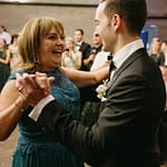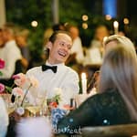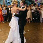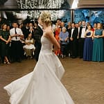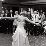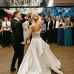 Once the dinner and speeches were done, they had a bit of dancing time upstairs and then made a train with all their guests down to the Blue Room for the full party until 2am!