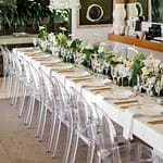 We set up one long table with beautiful decor by Botanica Flowers and The Hire Haus. Gini wore a lovely olive green dress which I thought was super cool!