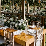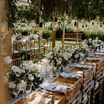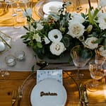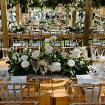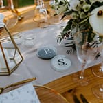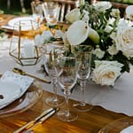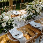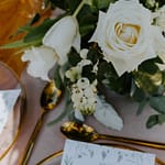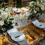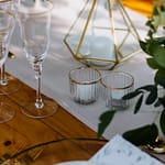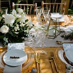 | Glassware, gold cutlery, under plates | The Hire Haus |