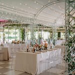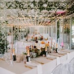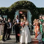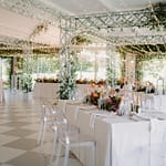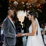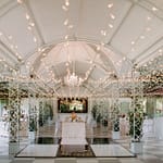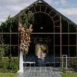 The ceremony was down in their open “chapel” which is just so pretty! The floral installation on the chandelier and one on the wall was just gorgeous and everyone commented on how stunning it was.
