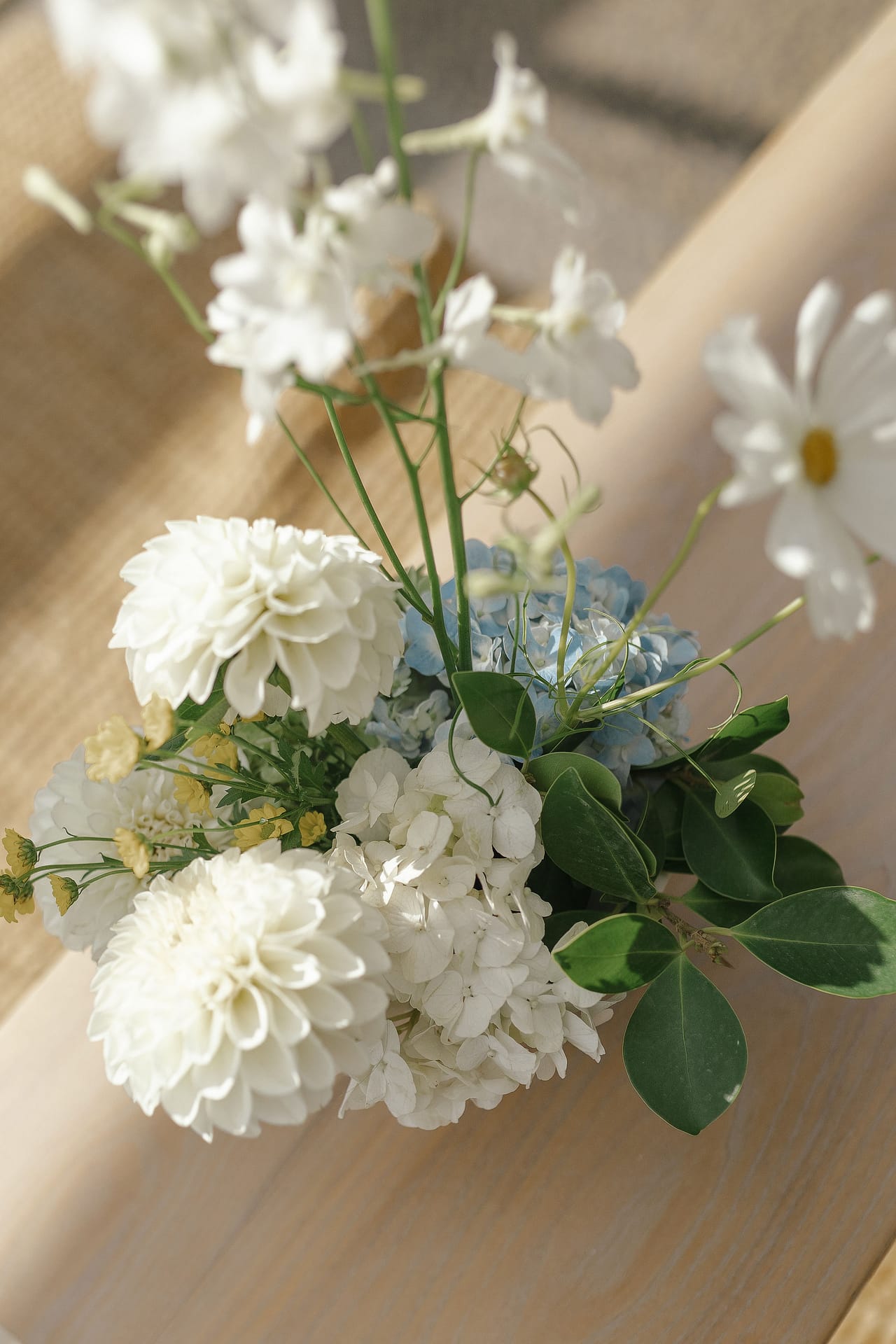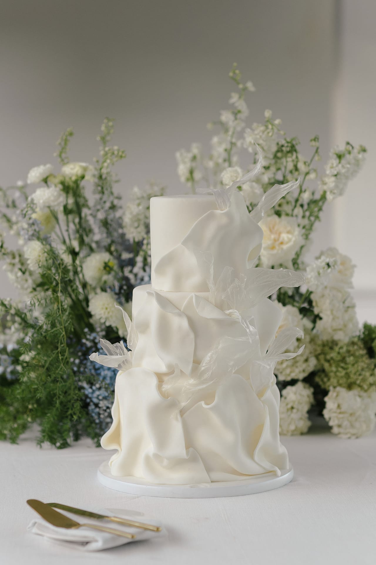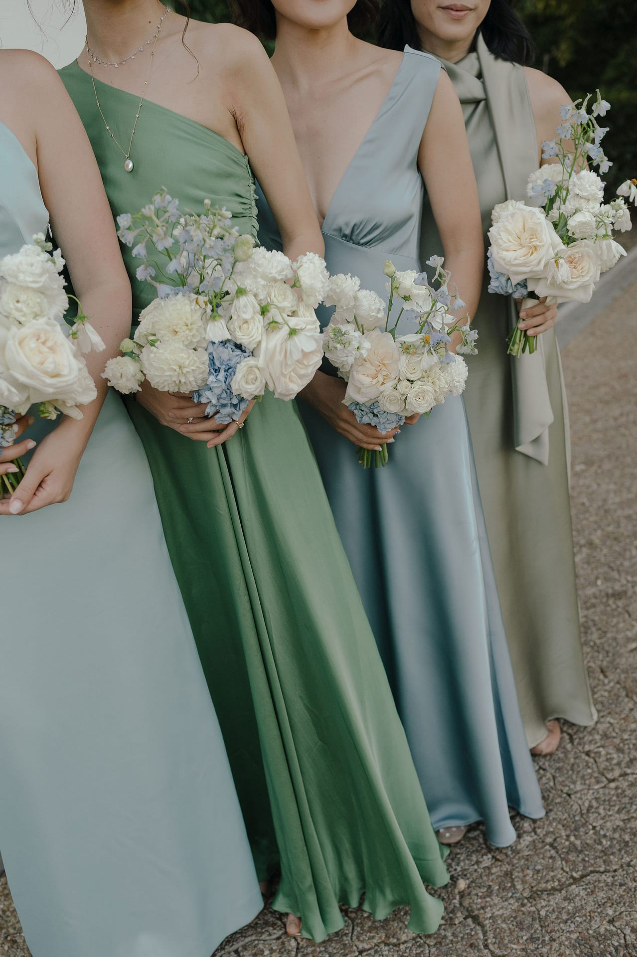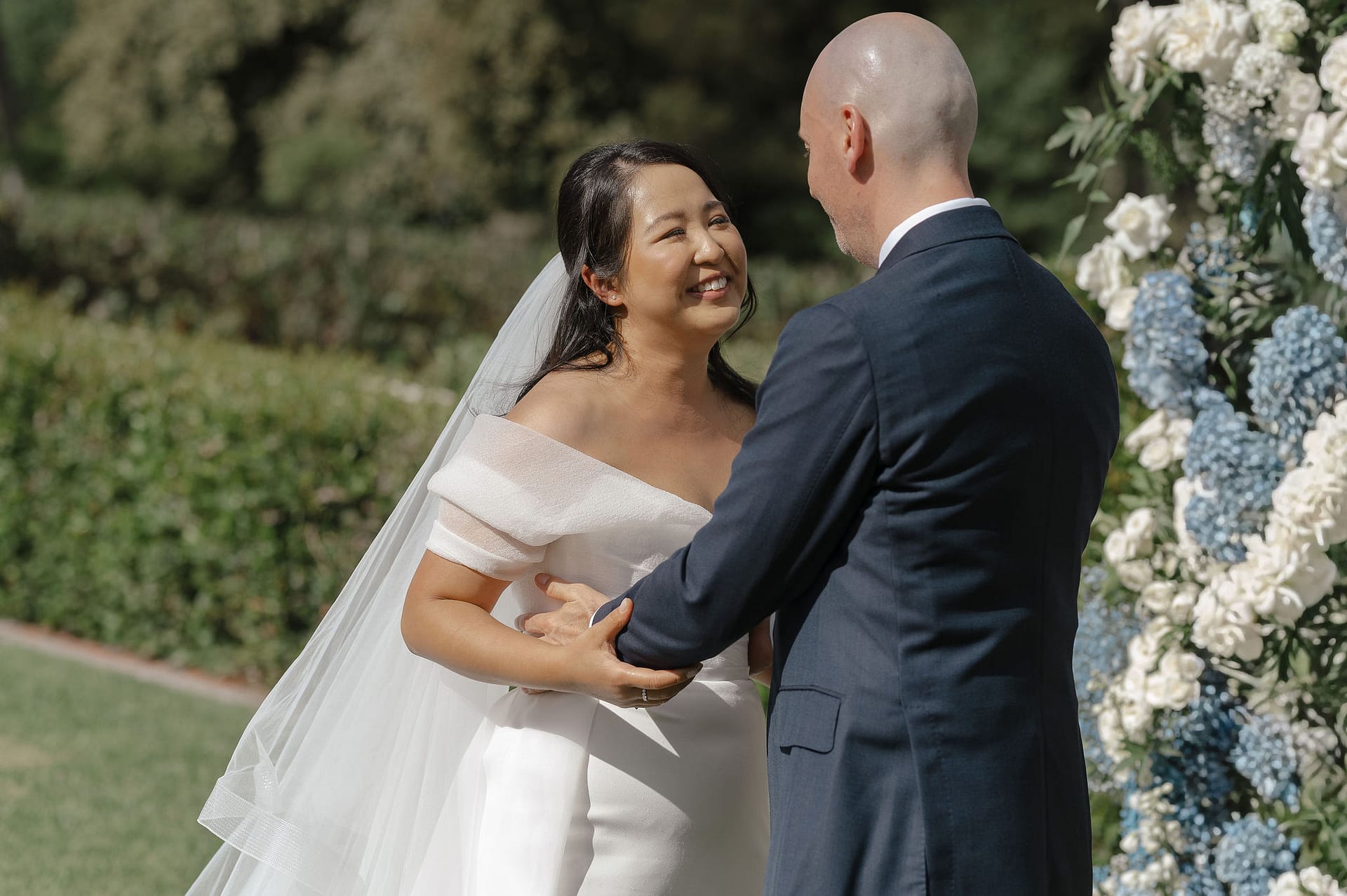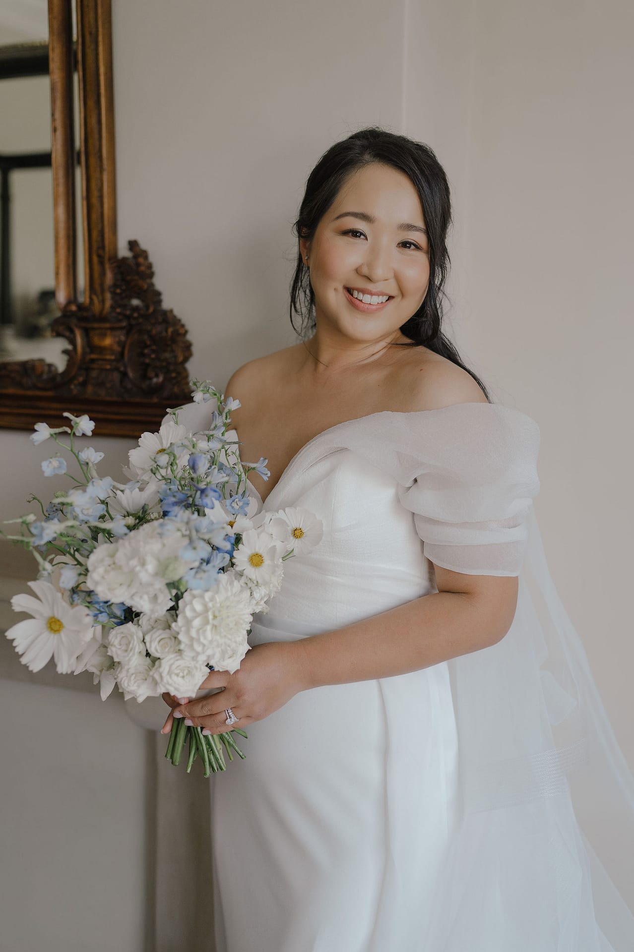 The wedding day itself carried a completely different tone, while still feeling true to them. The design centred around a blue and white palette, clean, classic, and striking without trying too hard. Curved tables softened the space and created a more fluid layout, encouraging conversation and movement throughout the evening.