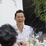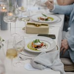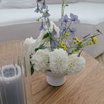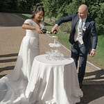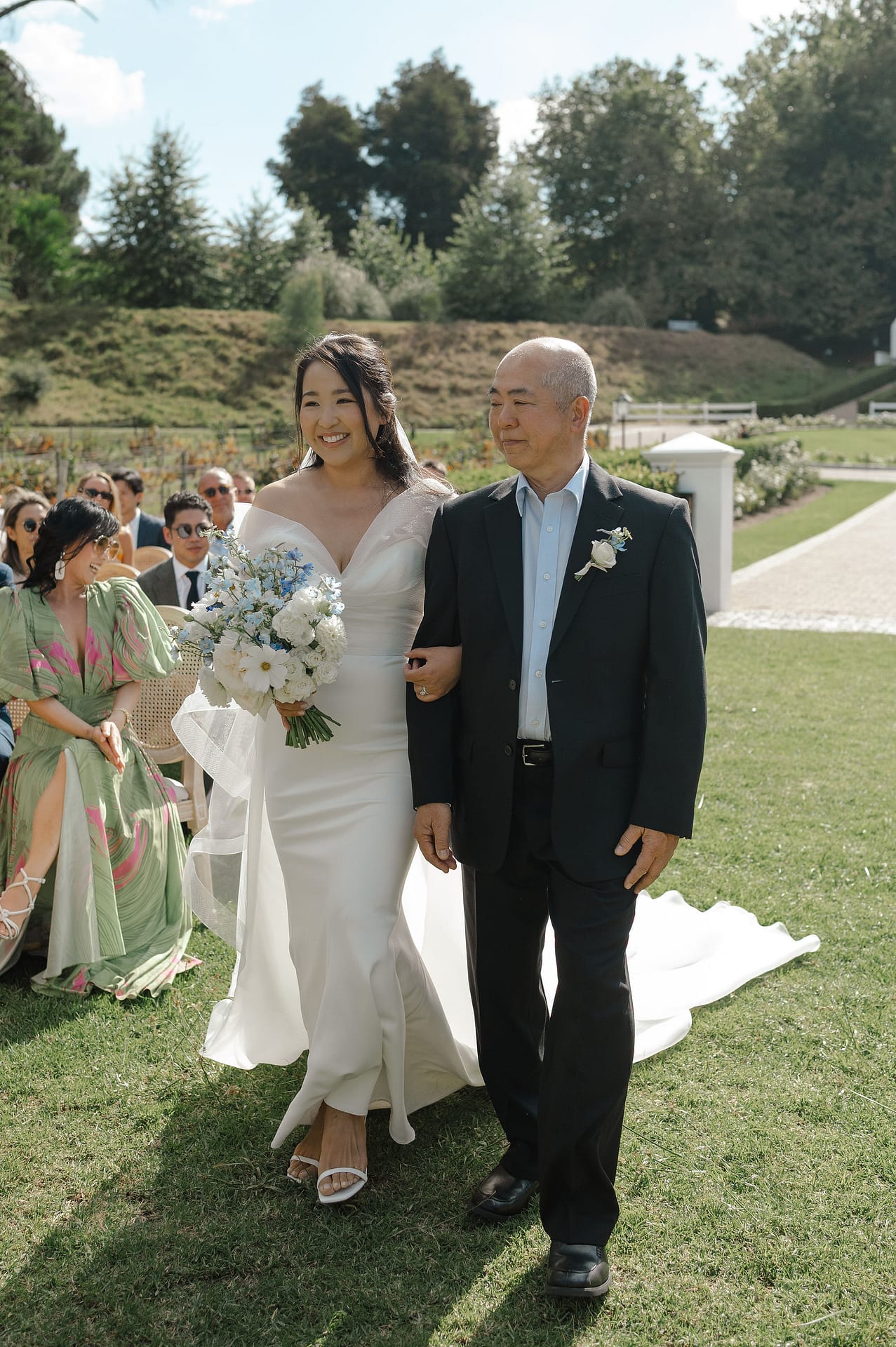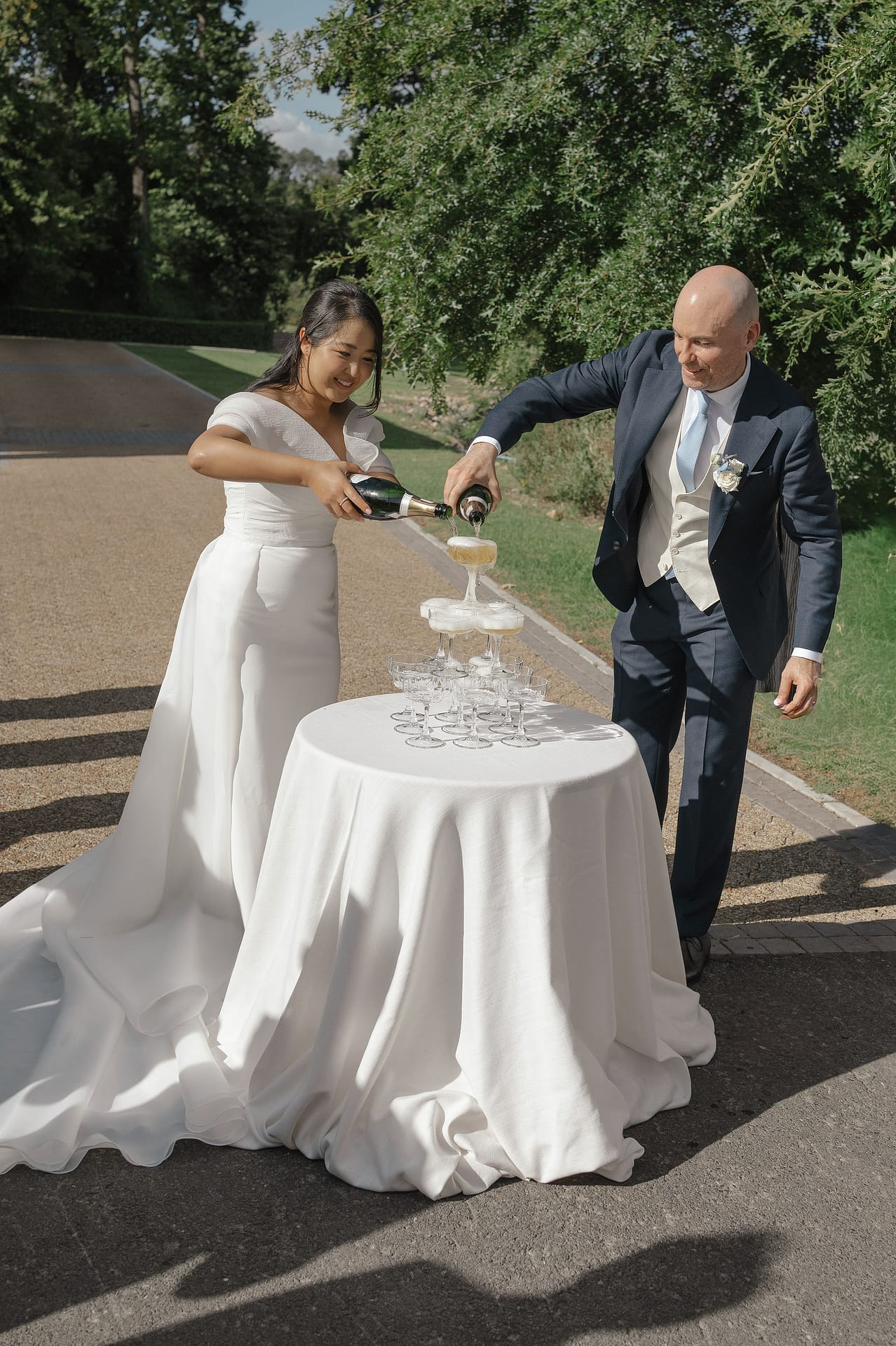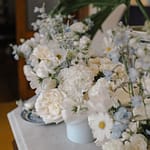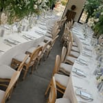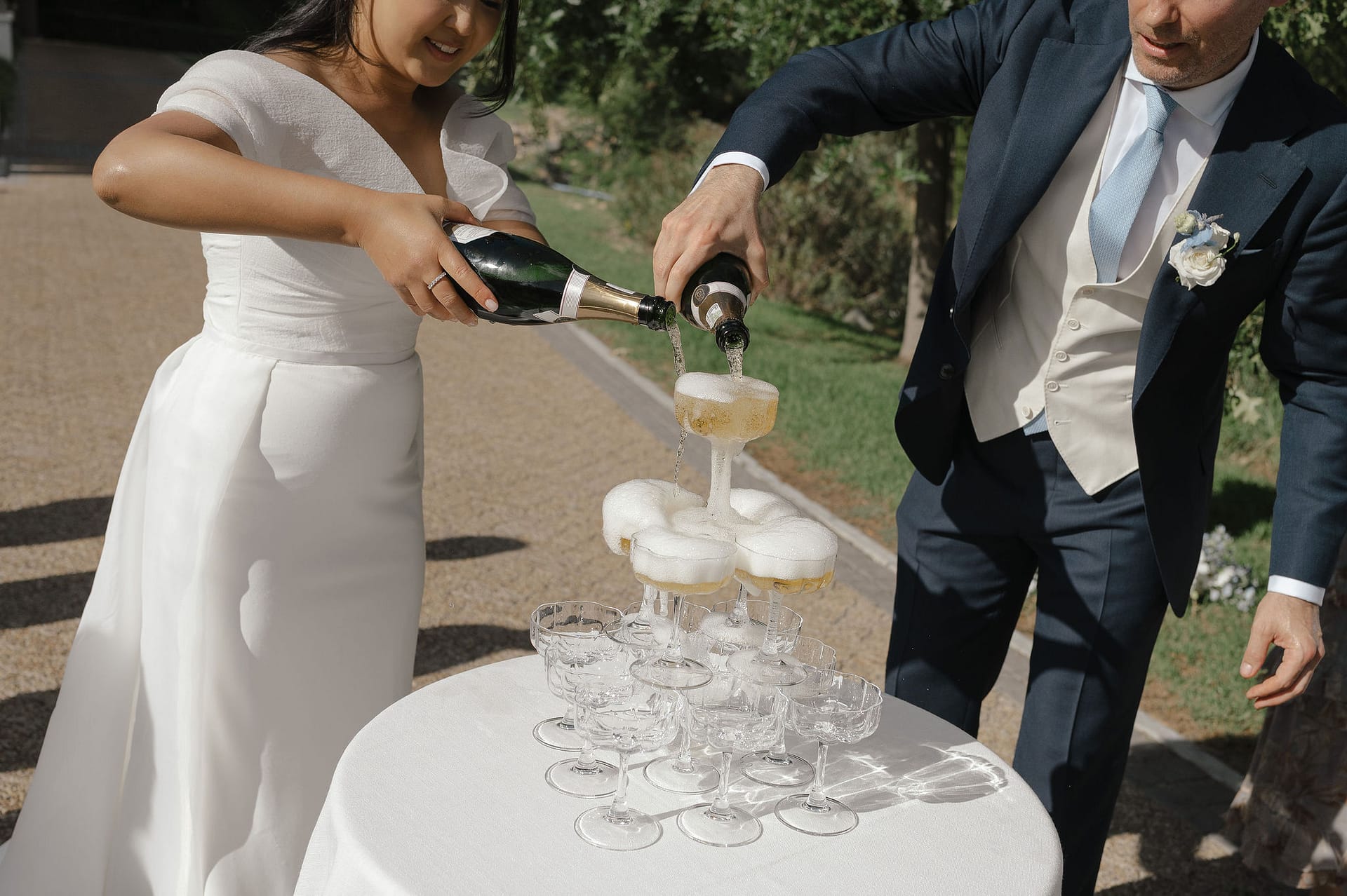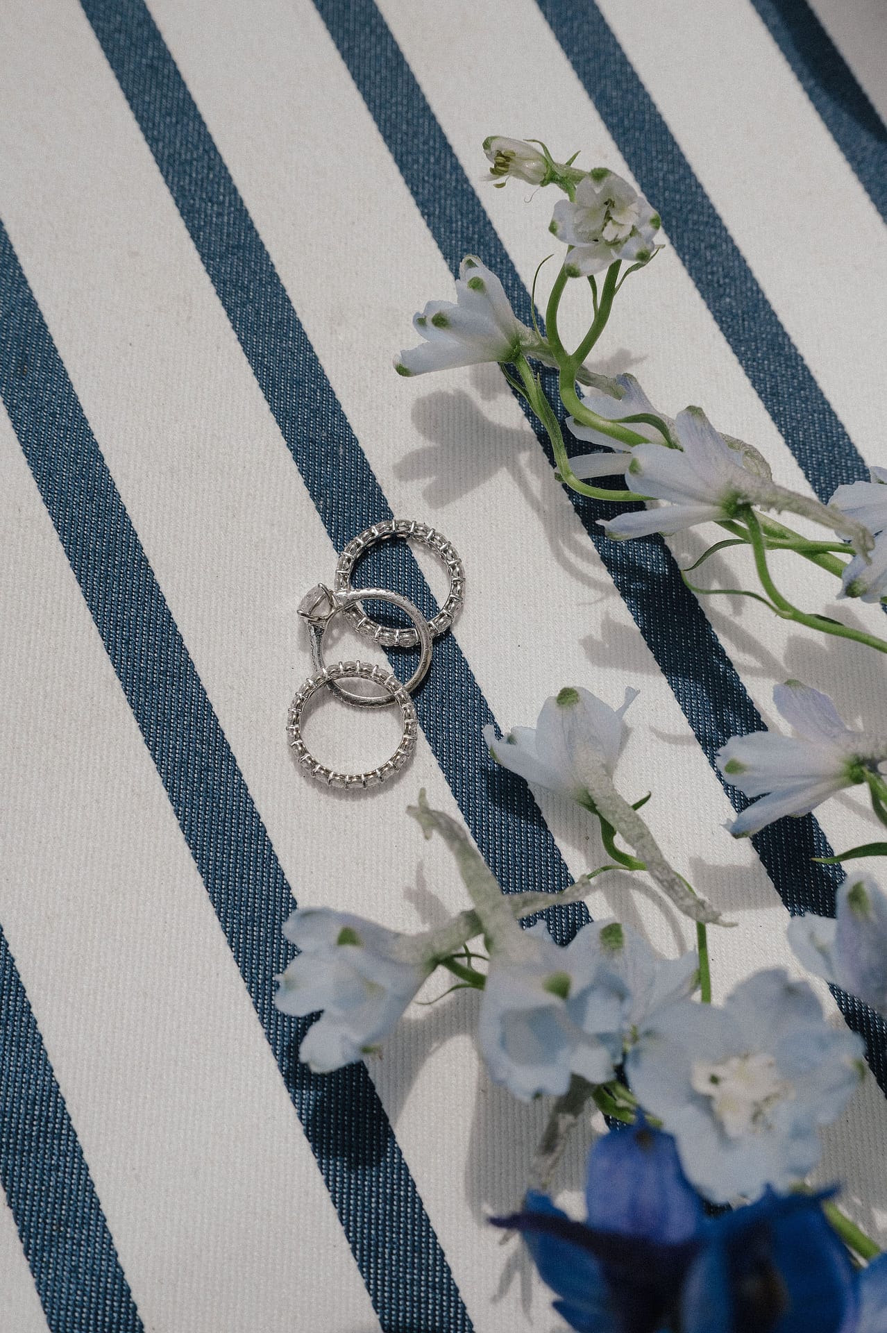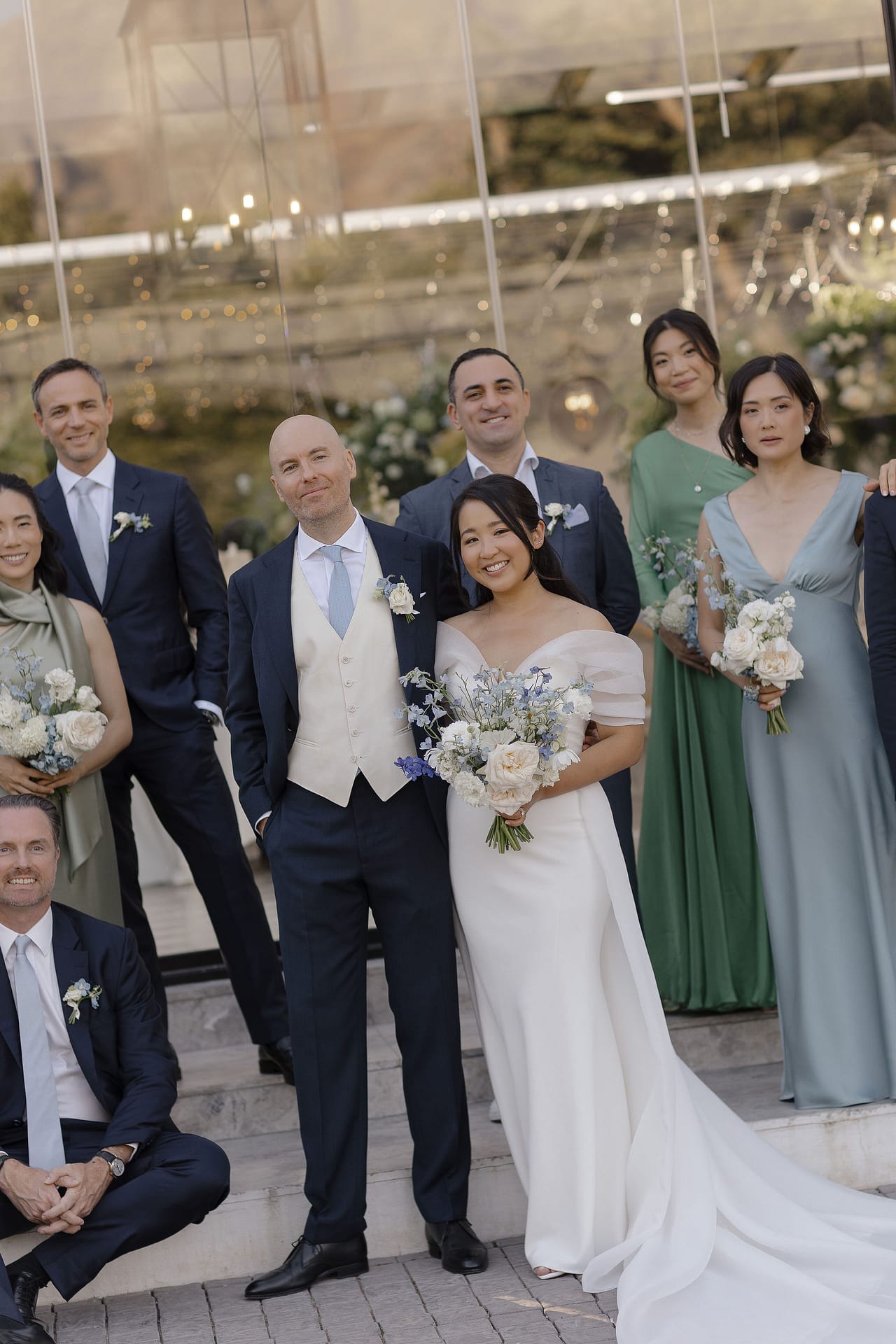 The wedding day itself carried a completely different tone, while still feeling true to them. The design centred around a blue and white palette, clean, classic, and striking without trying too hard. Curved tables softened the space and created a more fluid layout, encouraging conversation and movement throughout the evening.