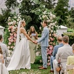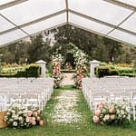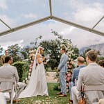 It wasn’t the bride’s first choice, but our Plan B quickly came into play, a tent was set up, with some extra floral to make it really pretty. The ceremony was so lovely. Nothing some floral, a touch of live music and the clouds slowly making an opening during the vows, to make everything ok.