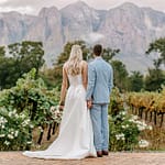March is usually a beautiful summer month in the Cape Winelands, but as weddings often remind us, nature has its own plans. On Nicki and Andrew’s day, rain swept across the valley, making their original ceremony under the open sky, impossible.