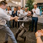 Despite the rain, the day was filled with joy, laughter, and plenty of dancing. Guests gathered close, enjoying the warm, festive atmosphere. The rain dropped gently outside while inside, the couple and their guests made unforgettable memories on the dance floor.
