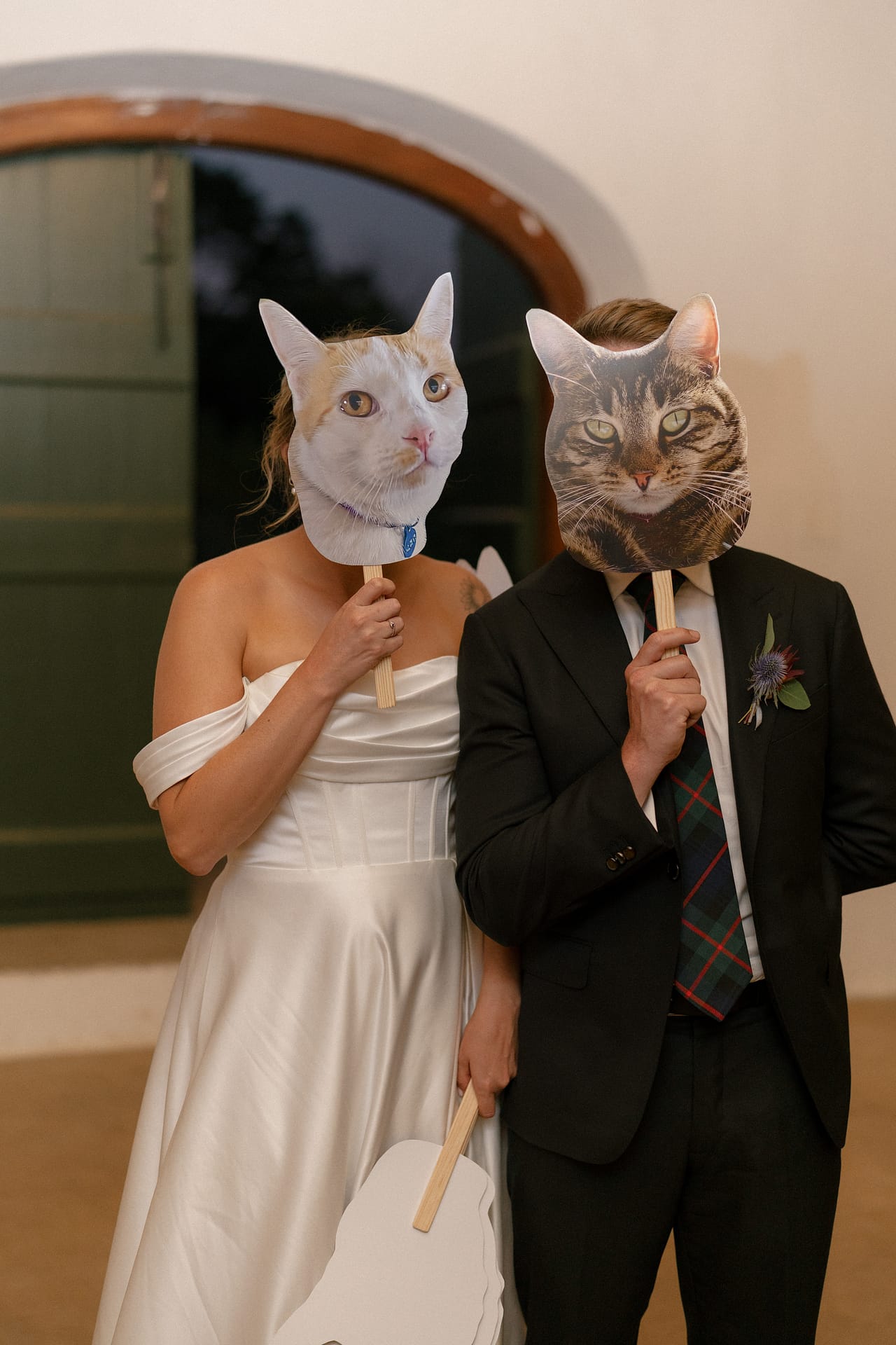 One of my absolute favourite touches (and something I’ll be encouraging all future couples to do!) was how they included their beloved pets. Their friends arrived with cut-outs of their cats’ faces, and honestly, it was iconic. These little moments brought so much personality, humour, and heart into the day. It’s such a simple way to include your pets when they can’t physically be there.