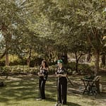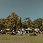 Their ceremony was outside on the beautiful lawns and their cocktail hour was just next to it under the lush trees.