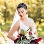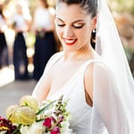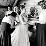 The ladies got ready at Arum Lily Cottages, a perfect spot for brides to relax before the big day. Robyn wore a beautiful wedding dress designed by Calegra Bridal House. Her hair was pinned up in a slick ponytail and her look was finished off with a stunning red lip – I mean seriously, what a gorgeous overall look!