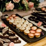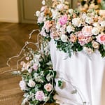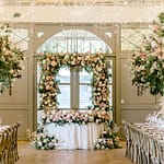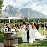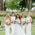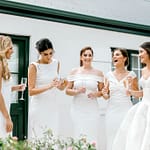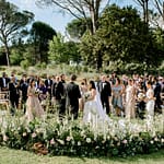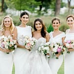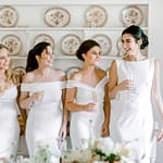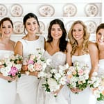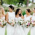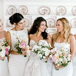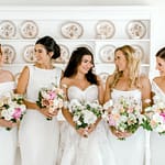 The above photos are bridesmaids goals! All the girls were so lovely and the white dresses were magnificent! Their ceremony was really special and it looked amazing with the different flower arrangements that circled them in with everyone. It was beautiful. Scape set up the cocktail hour with their stunning furniture. Wade made the most divine wedding cake and Paramithi did an absolutely amazing job on the florals. The guests were surrounded by flowers at every turn. It smelt wonderful in the venue!