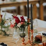 I really loved the darker colours used in the decor. It is so refreshing when a bride allows herself to step away from the total white wedding look. This setup looked so good on the raw wood tables. The couple photos are so stunning, Michelle looked like a fairy in the long grass. They are both so natural in front of the camera.