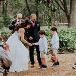 Their ceremony was outside under the trees, Michelle walked up an aisle made up of persian carpets and their arch was adorned with beautiful flowers. Justin teared up when he saw his wife to be, and so did his brother – so sweet.
