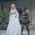 Before the reception started, the couple surprised their guests with another African dance in the courtyard. This was such a lovely idea. They really got involved and Sam landed up wearing an African head piece! It was such fun to watch them.