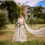 They decided on the gorgeous Boschendal Wine Estate in a Cape Town to hold their wedding. They were blessed with lovely weather for the outdoor ceremony which was held on the lawns by the Olive Press. Guests were then lead to the Rhone Homestead Lawns for their wedding reception. Gregg arrived on a horse and the guests sang and danced around him.