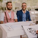 They celebrated with cocktails and canapes on the deck overlooking the lawns. Martinus the caricature artist kept the guests very entertained, and he was a little surprise gift from Shanta’s lovely father.